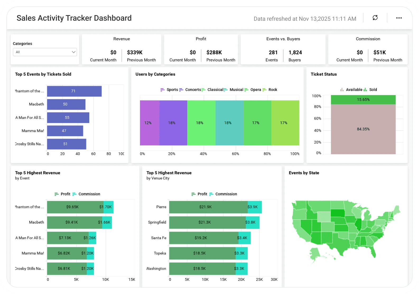 Update Frequency: Real-time: Revenue, pipeline, activities Daily: Lead metrics, response times Weekly: Win rates, cycle length Monthly: Trends, benchmarks