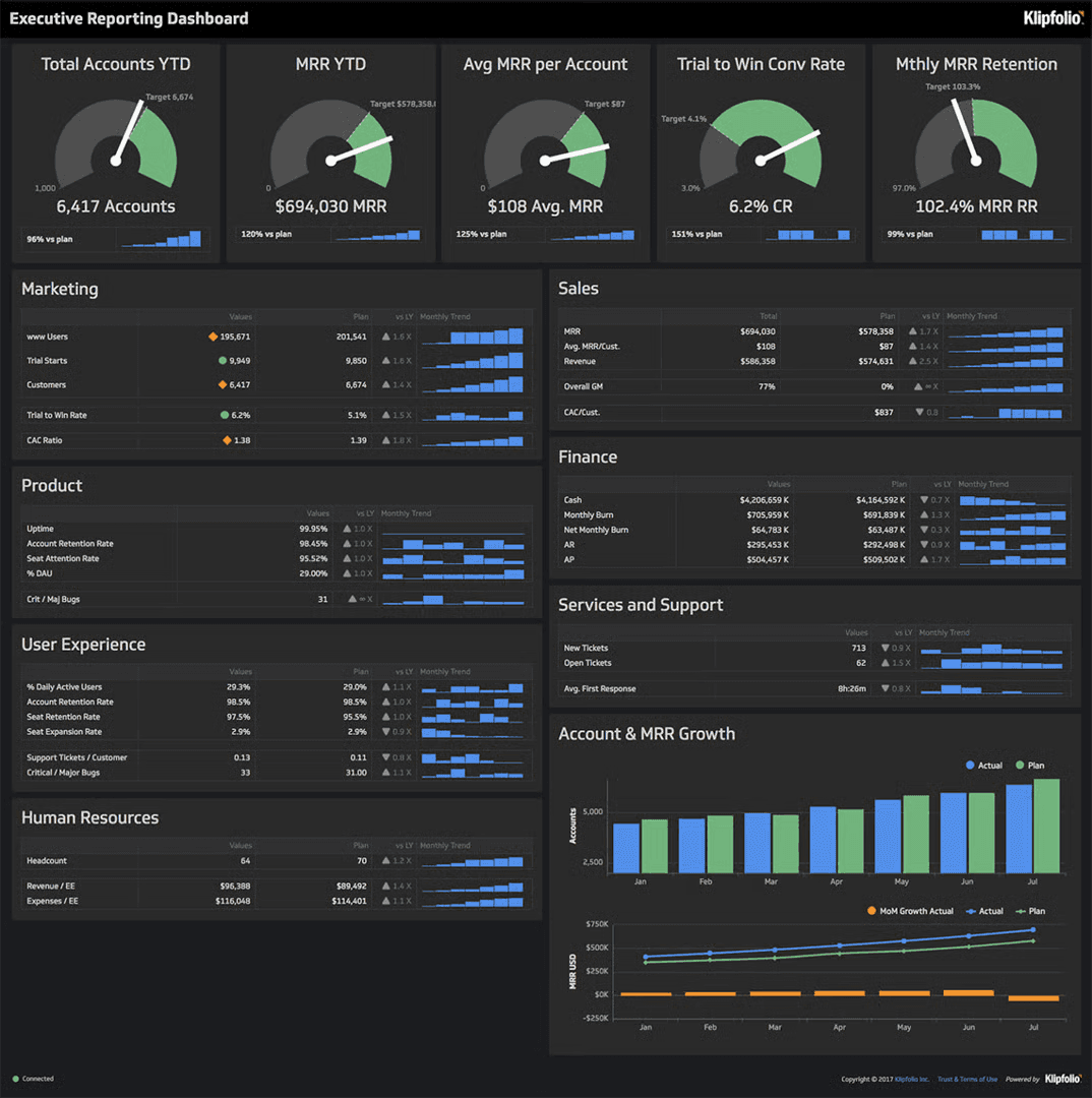 Tools: Salesforce, HubSpot, Tableau, Power BI, Klipfolio, Geckoboard